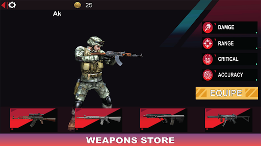 Battle Game is a free, offline shooter game that puts you in the shoes of a skilled sniper tasked with eliminating enemy forces. With a wide variety of weapons to choose from, you must navigate through challenging levels and complete missions to progress through the game.