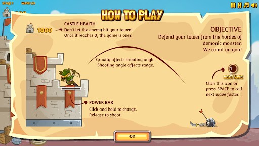 Defend your castle from the invading enemies with your archery skills. Aim and shoot your bow to survive each wave and kill all enemies.