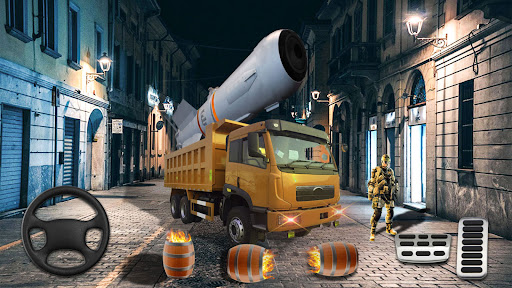 Transport weapons and bomb in army vehicles, army truck, European truck trailer, military truck which bring truck parking combination task. Bomb Transporter Truck Driving is new series of bomb truck simulator games 2023. City Truck Game glow skill of bomb truck driving. Transport Military vehicle real hill climber game is for so difficult to drive American truck in city streets. As you brave commando which face different weather conditions. Heavy truck need to follow the map while take you smoothly in army base secret camp 2023.