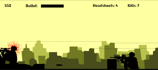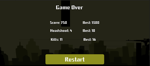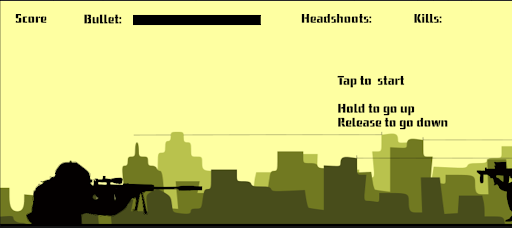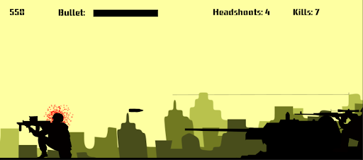In this game you need get kills and headshots, to get scores by the bullet you can control. Bullet has a health bar, if you hate the tanks or the walls the bullet lose healt and slowly you get game over and your results show up then you can restart the game.