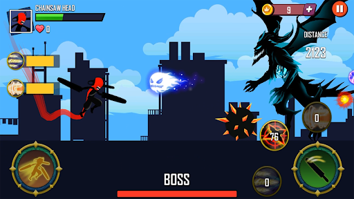 Chainsaw Head Shadow Run is an action platformer runner game with endless amounts of enemies to fight, as you work your way through different levels, getting a high score, avoiding obstacles, and fighting bosses.
