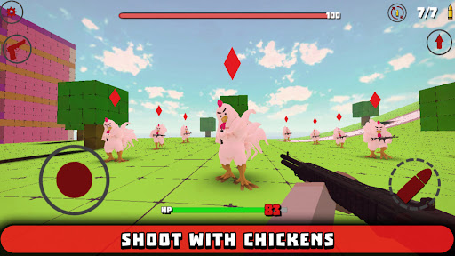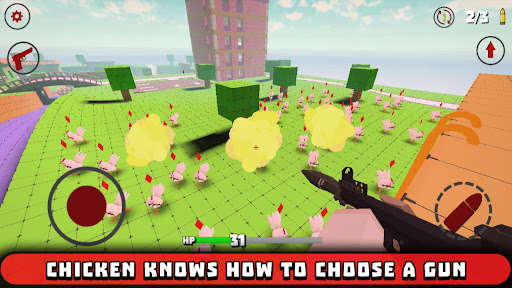 Chicken man with fps gun is optimized for mobile devices, so do not expect super realistic graphics from it. To do this, chicken fps shooter gun has a stylized low-poly and voxel graphics.