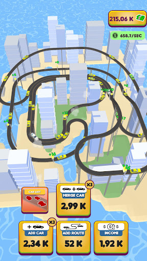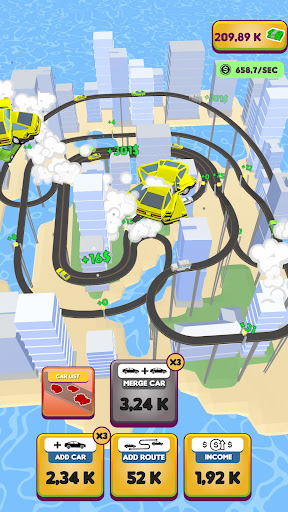 Buy cars to fill your city! When they cross income points, you gain money. What to do with money you ask? Merge your cars for better ones of course!