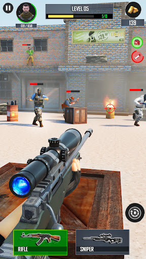 Here is the new challenging tps commando action shooting game 2022 for you. In this commando gun strike shooting game, you have to beat the enemy with a different strategy to win the fps gun shooting ops game offline. This fps gun strike game 3d is very easy to play yet challenging to win the level. You just have to move the crosshair with your finger to move the commando action gun strike ops shooting game offline and aim properly at the enemy to win gun special ops strike mission games. To win this commando action gun strike ops shooting game offline, try to beat your enemy through this method you will be able to beat them easily as compared to taking a shot somewhere. In commando action gun ops shooting games, you need to hide behind the boxes in order to save yourself from the firing and grenades in gun strike ops shooter games.