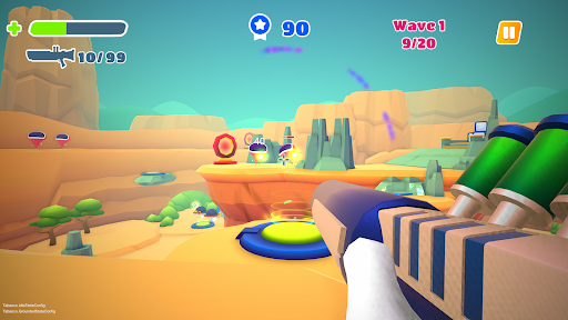 Fight with aliens invading your planet in this cartoon like first person shooter. Use unique weapons, unlock new abilities and fight powerful foes on different maps to reach the highest score possible and defeat them all.
