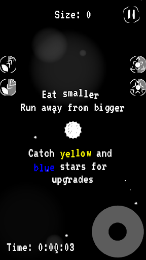 Cosmic Eater is a small game where your goal is to control a cosmic being that can eat everything that is smaller than itself and avoid being eaten by larger beings.