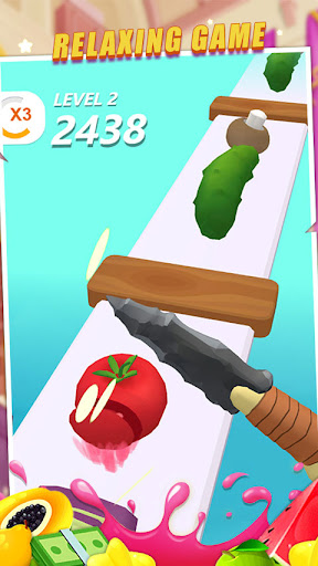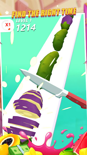 *Tap the screen to control the knife, cut the coming vegetables into thin slices.