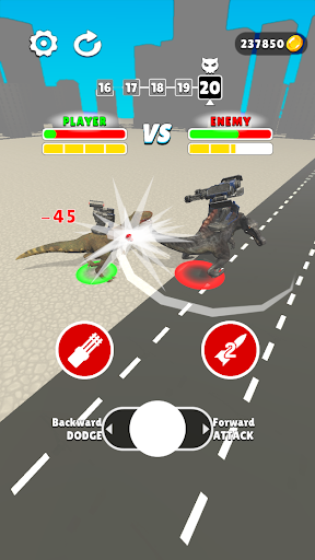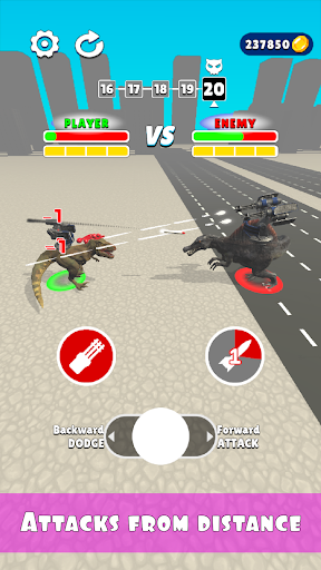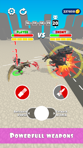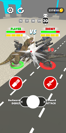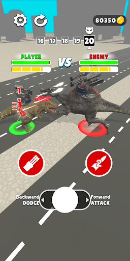 Power up your Dino with new skills and weapons and fight other dinosaurs. For each fight you earn gold, which you can then spend on power-ups. Use the joystick to move your Dino left and right.