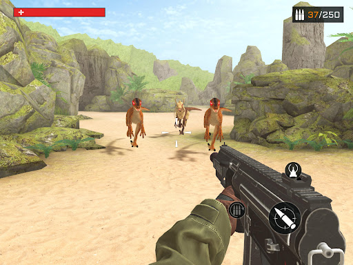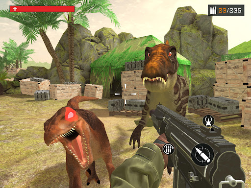 Use your weapon however you like. Put a whole magazine into the body, hit them right in the head or blow them up at the right moment with a canister, gas bottle or barrel. Just don’t let the dinosaurs get too close to you.