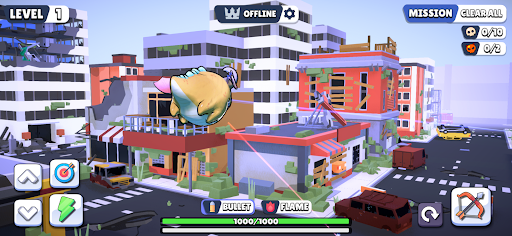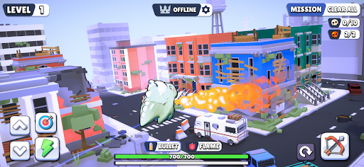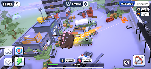 If you like shooting games and love cute dragons, so Dragon War Battle Royale is game for you. The game has 2 modes Online and Offline. Offline mode has 4 play styles: Clear All, Protect, Rescue and Hunt Lair. With Clear All mode, you will control your dragon to destroy all zombies and other dragons. In Protect mode, you must protect your food against the onslaught of dragons and zombies. With Rescue mode, you have to go rescue hostages by the bad dragons holding them. Finally, the Hunt Lair mode, you will have to find the lair that spawns bad dragons. Currently, the Online mode has only one type of play, Battle Royale. Your dragon will, along with 9 other people, randomly appear on a large map and find ways to destroy each other. Whoever survives in the end is the winner. Good luck and happy!