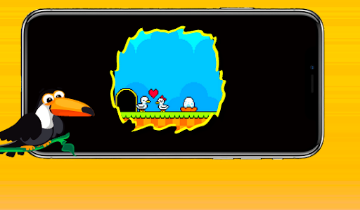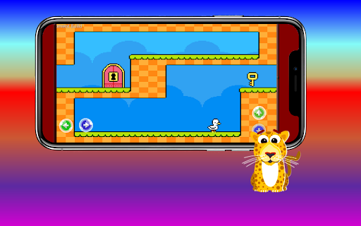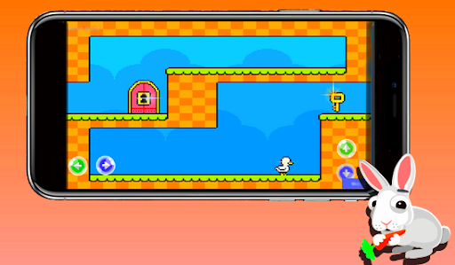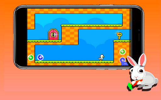 A multi-level action game, divided into 8 levels, in which the male duck tries to find his partner, who is waiting for him in the nest with the egg, in each level there is a key and a door, the key must be found, the door has been opened to get to the next level, in each stage there are several obstacles that must be mated .