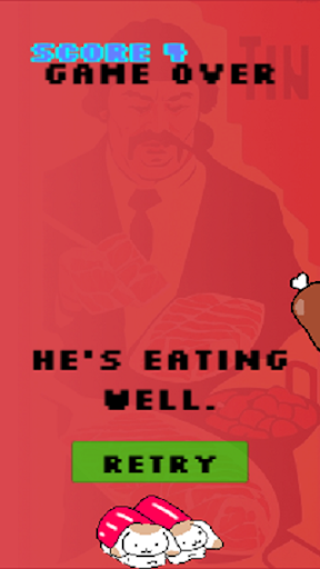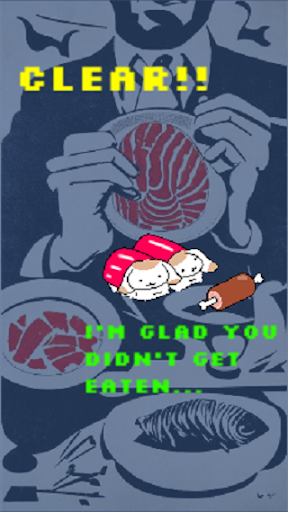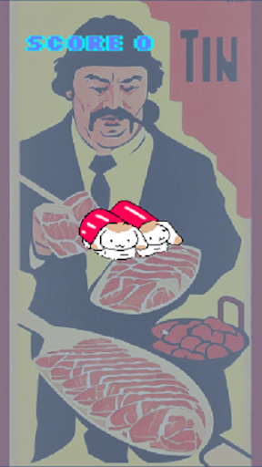 A sushi-like dog runs away from the plate to get a tasty piece of meat.