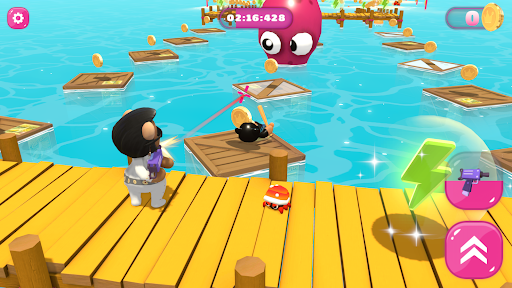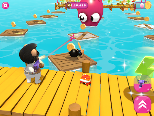 The goal of this jump ‘n’ run multiplayer game is to use the weapons and items in-game to achieve victory and collect the most coins… of course you could also set yourself the goal to completely demolish your friends or opponents… I am just saying… you could…