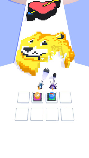 Shoot at pixels to break and earn money. Buy canons and merge them to evolute higher levels. How many shapes can you break?