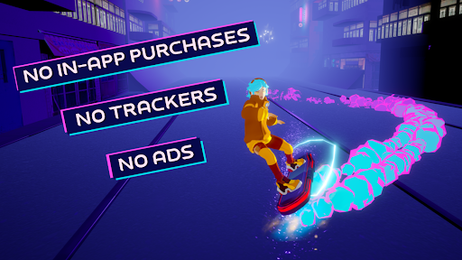 Slide, skate, and surf with Hana on a hoverboard through an adventure to find a mysterious treasure hidden in a futuristic and cyberpunk world.