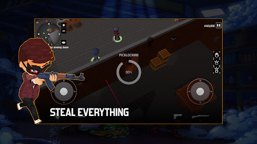 Welcome to the world of heisters where no cops and good guys. Play as heisters who rob other heisters then uses the loot to build your own squad and base. Feel the thrill of shooting enemies while searching and breaking into enemy vaults. Then, enjoy your loot by using it to build a strong base and an unstoppable squad.