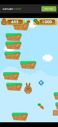 This is a platform game where you control a jumping bunny aiming to overcome all obstacles in each level.
