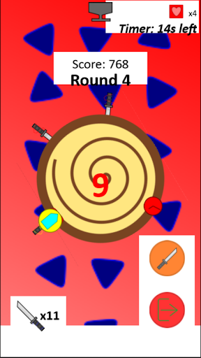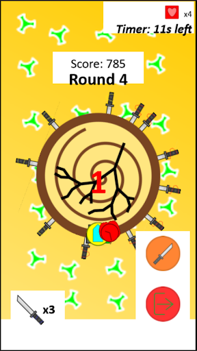 Get ready to throw the knife right at the rotating log and make it cracks, don’t miss the falling items to increase your score. The more levels in the game, the more number of knives that you can throw. Avoid irons and timers when throwing.