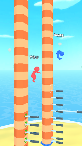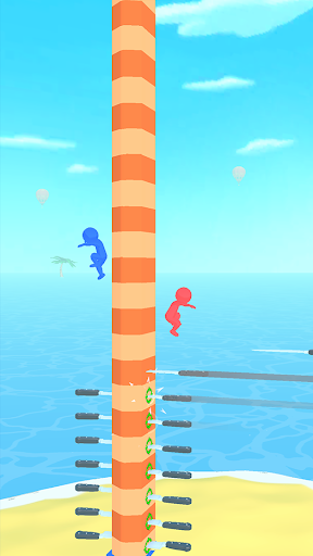 Tap n hold to hit knife and reach the rainbow stickman top of pole