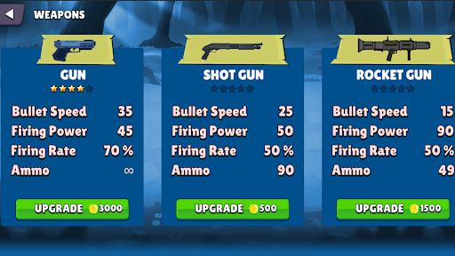 Game comes with amazing graphics & new guns like ShotGun, Rocket Gun and Machine Gun that makes it interesting for all ages. It has nice shooting and bomb animations and sound.