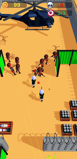 You are a special agent whose task is to get into the enemy base, to be unnoticed, to blow up shells and valuable resources at the base. Call and merge allies to power up, and clear out the enemy base to fly a helicopter into the sunset.