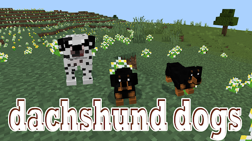 Dog pet game mod for Minecraft PE is an application that increases players’ enjoyment of the game by allowing them to have a faithful and cute canine friend. There are over 30 different dog breeds available in the mod based on real breeds such as the Poodle, Chihuahua, Dalmatian, Husky and Pug, each with its own texture and coloring. The main function of the mod is to tame dogs craft, for which the player can feed his pet with bones or meat if you need to take care of his health. In addition, dogs can be used to extract resources and protect the player from opponents. Dog World mod has great voice acting that helps players immerse themselves in the game world and enjoy its gameplay. Players can play with their pet, train it, and take part in various challenges and adventures, allowing them to feel even more involved in their game. Overall, the Dog World mod allows players to add even more variety and depth to their gaming experience by allowing them to have a loyal and sweet canine friend who will always be there and ready to help at any moment.