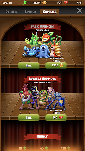 This match 3 action game in which players create combos by moving gems continuously within a set time. More combos adds more damage that allows your monsters to cast their skills in battle. Your skills will make a big difference during a battle! Start collecting monsters now and assemble the ultimate team that suits your play style!