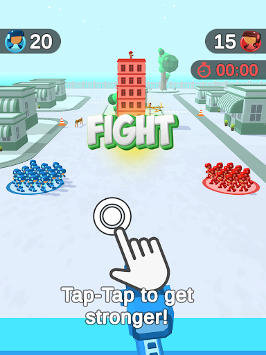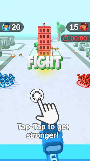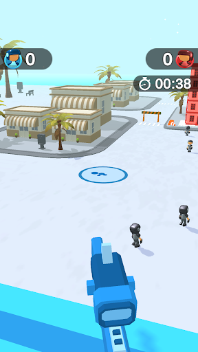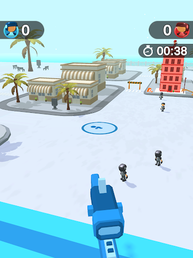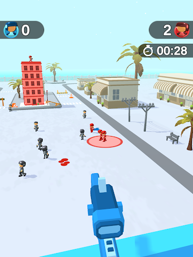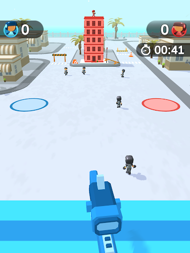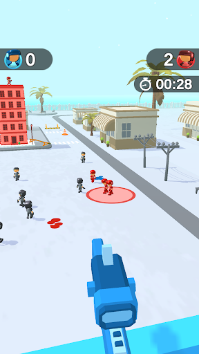 You and your opponent are on the top of skyscraper, there are many wanderers in the city, paint them with a paintball gun and collect your team. Try to shoot as quickly and accurately you can as your opponent will try to do that. When you paint someone, you collect him to your team, try to paint as much as you can to win the final fight.