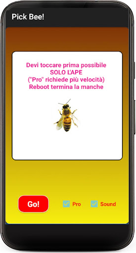 Are you sure you recognize a bee on the fly? Do you know that the future of humanity depends on the bee (which, in addition to giving us honey, also takes care of the pollination of fruit plants)? This App is bilingual (Italian and English with automatic activation according to the language set on the phone) It is possible to activate a “pro” mode (which requires greater speed), activate or not the sounds, keep track of the different records and restart the App at any time by closing the run in progress and opening a new one.