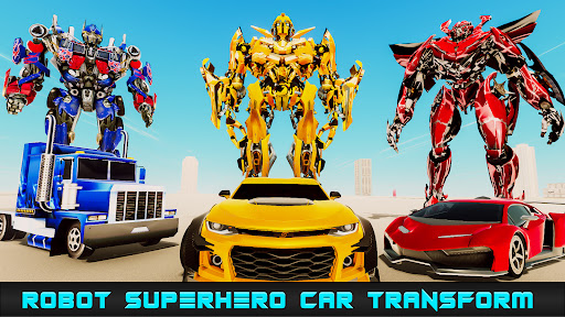 ROBOT SUPERHERO CAR TRANSFORM: LIKE HELICOPTER GAMES have target to reach on the next level with robot action of car robot transform. A best solution towards robots games for kids. Robot superhero game with transform war having speed robot as a superhero robot. High rated adventure game with best shooting equipment to save real city from crime robots. Real robot action with city robots performing robot simulator car robot transform. Robot car game will brings you real battle with your choose transform superhero robot. Same actions like helicopter games but this is car and robots. On paying you will find yourself drown into this crime city as a superhero robot.