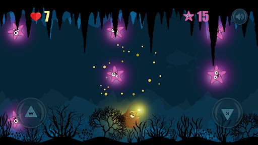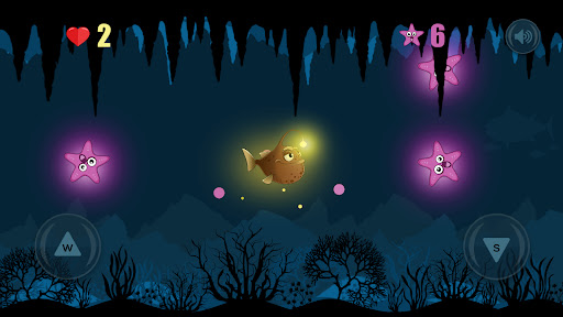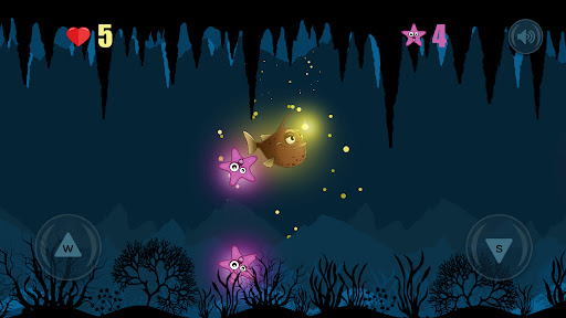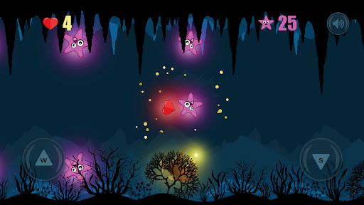 Остерегайтесь столкновений с морскими звездами, ловите только плавучие сердечки, они восполняют здоровье и отнимаются при столкновении со звездами.