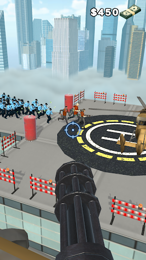 Help your gang escaping from the police. Shoot at the police and SWAT units with your machine gun, destroy barricades, explosive barrels and copters!
