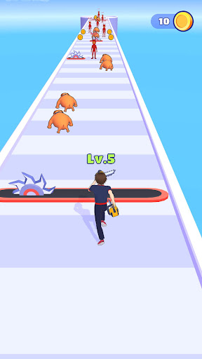 Swipe the character left and right to collect dogs and coins. Cut down your opponents. Defeat the boss to rescue the girl from captivity.