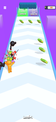 Improve your scissors by going through the doors, cut the enemy and cuttable objects on the platform, earn money and reach the finish with the best shape of scissors!