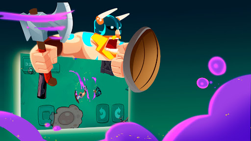 Move the character around the map by rotating it around its axis. Defend yourself with a shield and attack your opponents with an axe.