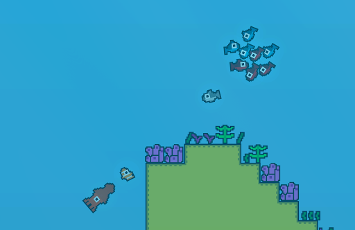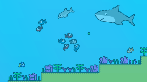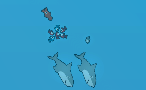 Survival game in which you play as a fish, but you are not alone, because you live with others fishes, being part of a shoal of fish. You will have to avoid enemies and eat food to survive in the ocean as much as you can.