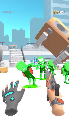 Zombie puzzle shooter. You have a gravity glove. With the help of a glove, you can attract objects to yourself and forcefully throw them at zombies. All zombies can collapse, and lose limbs. Pull and push things into zombies to destroy them. Many types of different weapons will make the destruction of zombies more fun! Destroy all zombies!