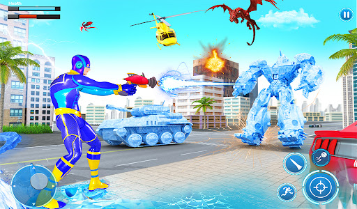 Undergo the energetic expert flying ice hero ninja fight action game. You are the perfect flying hero in this robot ice flying hero fighter 3d action game. As an encounter specialist, your duty is to encounter every gangster and mafia lord in this ice flying hero war mission.
