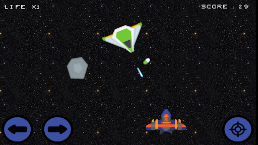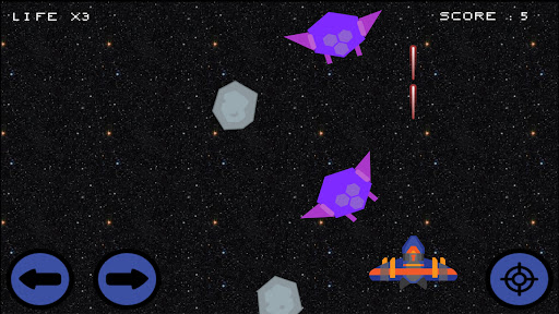 Tap the right and left buttons to control the movement of your plane. Tap the shoot button to unleash lasers that will help you defeat your enemies. You will have 3 lives at the start and can still increase. Be careful of meteors, don’t get hit. Get shield, life pill, and power score. You will win if your score exceeds 100. On the other hand, you will lose if your life runs out.