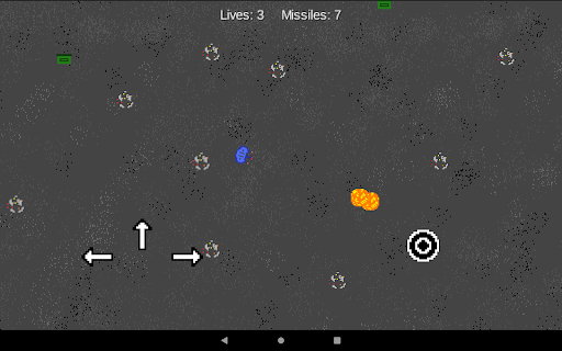 You command a spaceship travelling through the universe. Your job is to keep the spaceship safe for as long as possible. There will be asteroids coming from every direction. Move the spaceship and fire missiles to survive. Collect ammo to resupply your missiles. Collect health packs to resupply your health. There are 3 modes: Easy, Medium and Hard. The harder the mode, the faster the asteroids will be and the fewer lives and missiles you will have. Destroy asteroids with missiles to score points. Set the highest score possible!