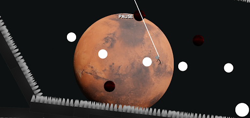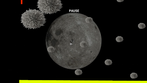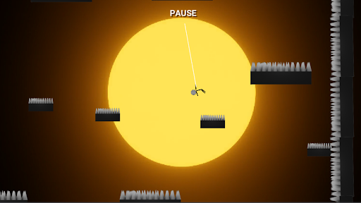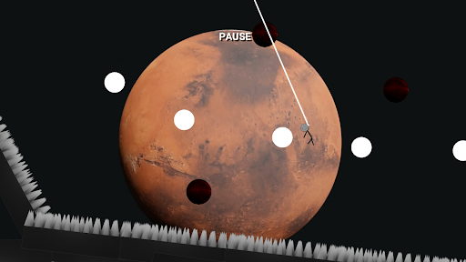 A game where a stickman uses his swinging ability to avoid obstacles while sky diving in space next to different planets avoiding new and harder obstacles as you progress