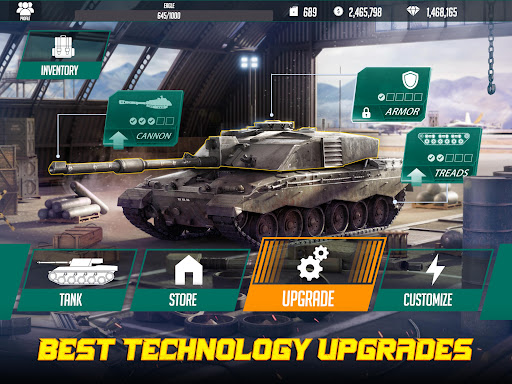 • Upgrades: Improve your tank’s skills and parts to increase your strength and effectiveness on the battlefield.