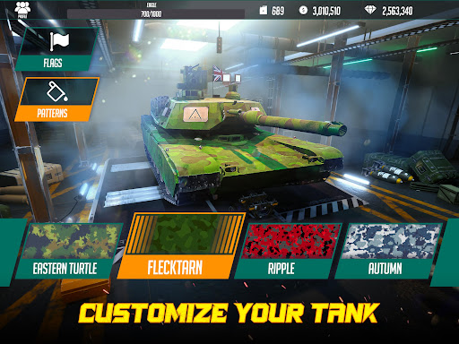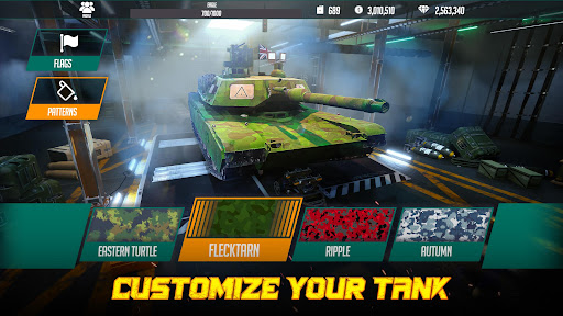 • Customization: Customize your tanks with unique patterns and flags to show off your style.