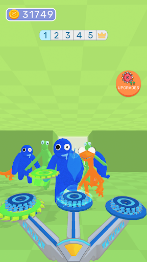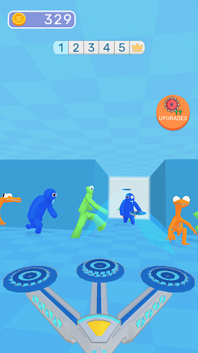 You have to upgrade disk gun and throw colorful disks into enemies.
