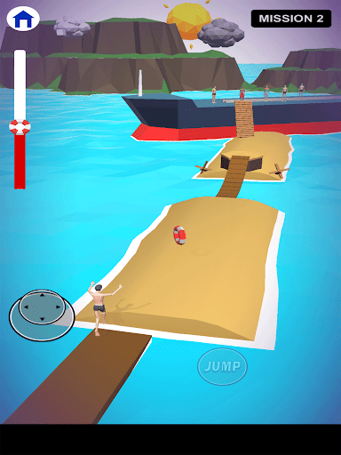 You should use the character in the game to escape from the tsunami and reach the finish line.