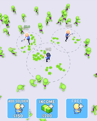 Reposition your soldiers by dragging them around the screen to get even the last Z. Merge them by dragging and dropping them onto each other to discover a lot of upgrades!