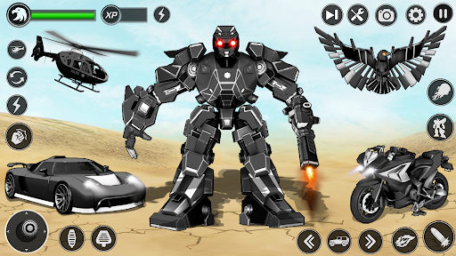 You may have played many hawks flying cars shooting robot game, superhero robot games, flying car shooting- ultimate car flying simulator, flying rope hero game, and gangster crime city mafia games but this flying car simulation 3d hawk transformation muscle robot car transforming game but flying police helicopter car transform robot games is out of this world in which a robot with a flying pigeon robot bike transform metallic Play extreme flying muscle robot car transforming game. In the flying hawk robot fighting simulator transformation flying robot game, you have to fly in the sky as a free hawk war transforming real flying car shooting- ultimate car flying simulator grand pigeon robot spider legend and become a real fighter against gangster crime in the vegas city robot fighting games and flying car shooting game. Play the most amazing modern bot muscle Robot car transformation Game hawk games and enjoy the hawks futuristic flying hawk robot war-free games hawk game and flying car simulation 3d shooting robot games.
