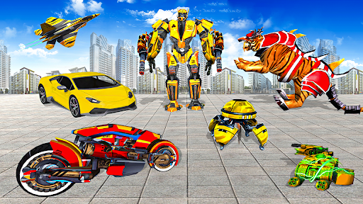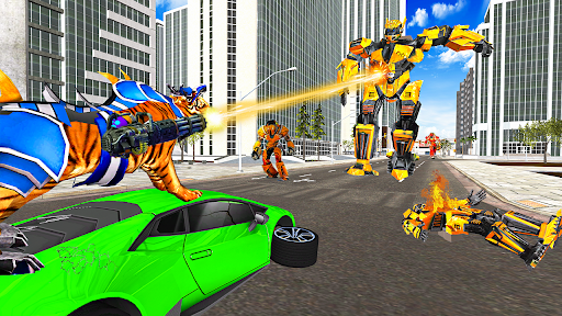 The lion Robo game is all about to find and destroy other enemies’ cars, robots with your special robotic powers. Enjoy the unlimited adventures and an interesting missions to complete in flying robot games. There are many alien robot enemies which are coming from the space battle to destroy the city buildings, hospitals and school. Take the responsibilities as a Tiger robot car transform and rescue all the innocent civilians from the criminals in lion robo car games. You can convert your tiger robot into a flying car where you can use your superhero powers in this robo war of animals to knock down all the upcoming enemies entering in US city. The enemies will be trying to shoot you in cheetah robo car game. Your main tasks is to bring peace and calm in your city by defeating all the robots in this war of a tiger robo flying game. You war is against the robot mafia gangs so let’s teach them a lesson and be the best defender of your city in this limousine car games. Enjoy an exciting and challenging missions of Tiger Robot Car Transform and get into the war against the evil robots and defeat them badly by using your super powers and abilities and fly as a robo tiger as it is the combination of robot shooting games. You have a great opportunity to fight against the deadly robots and use all the features to defeat the enemy’s boot camp in future limo robot game. Experience the best police flying robot car game and be the hero of the city by protecting them from the evil robots.