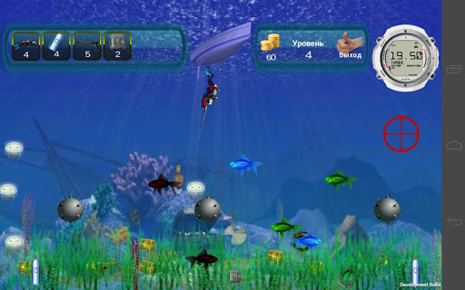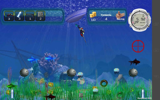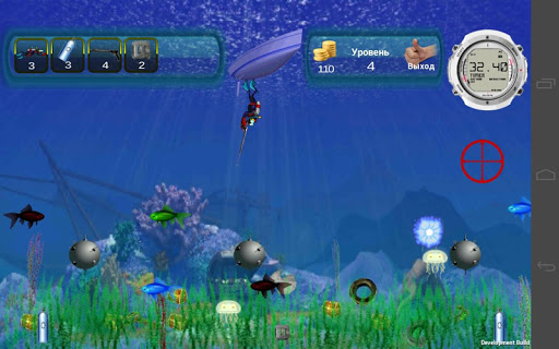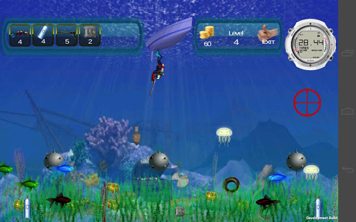 Terrible sea creatures will hinder you, but you can destroy them using underwater gun.