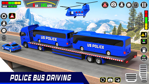 Police Vehicle Transport Games 2023: Police Car Transporter is a 3D mobile game where you take on the role of a car game responsible for transporting police vehicles to different locations. The Car Driving Games feature a variety of police vehicles, including cars, SUVs, vans, and buses. You will need to use your Police Truck Game skills to safely transport the vehicles across the country in this Grand Police Vehicle Transport